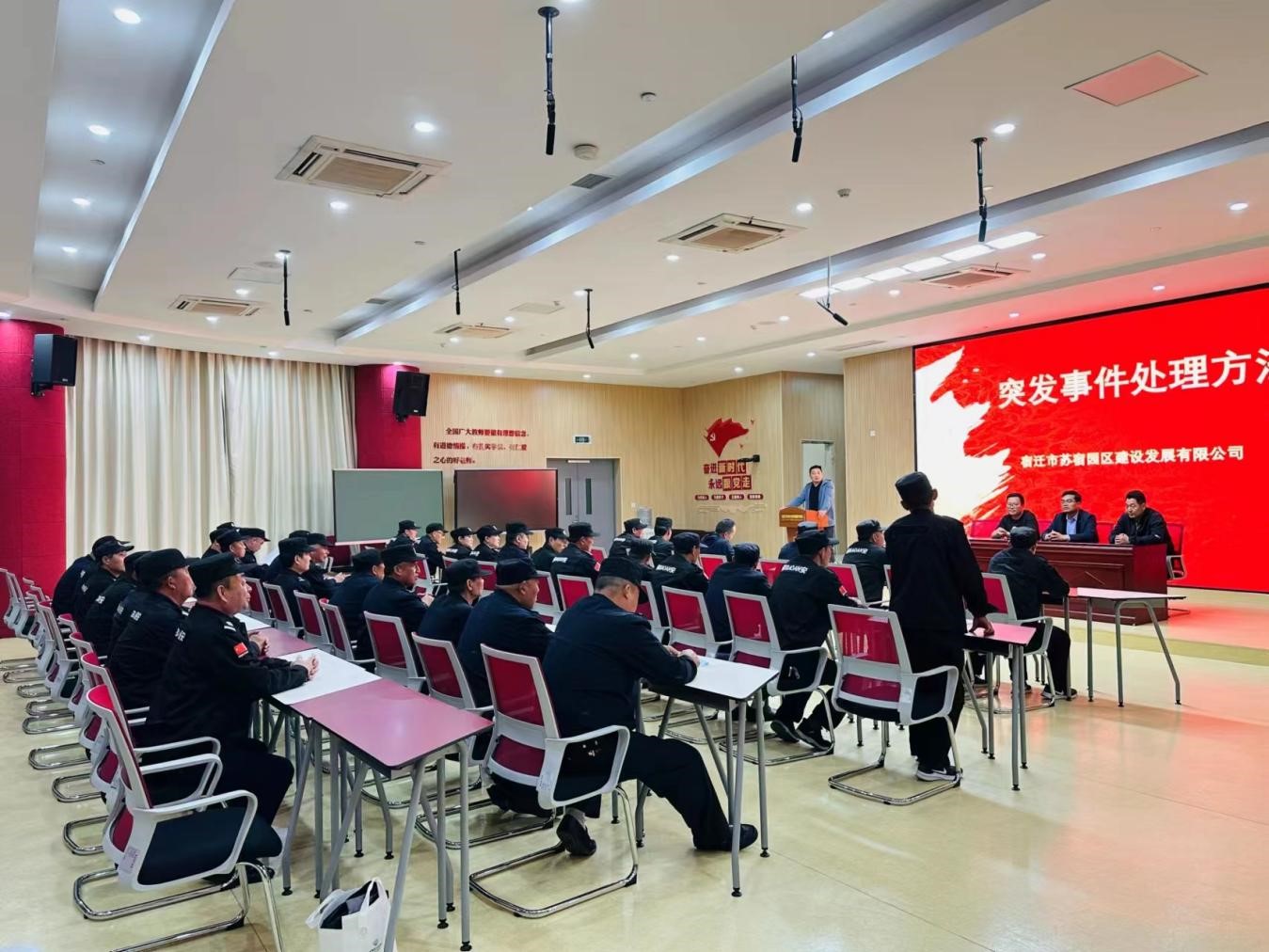 為進(jìn)一步加強(qiáng)項(xiàng)目應(yīng)急能力建設(shè),提高救援應(yīng)急處置能力,4月18日下午,建發(fā)公司在蘇宿外國語學(xué)校召開突發(fā)事件應(yīng)急知識(shí)講座,園區(qū)公舍、蘇宿工業(yè)坊、蘇宿外南北校區(qū)、夢(mèng)家園、生產(chǎn)力中心等項(xiàng)目安保人員參加了培訓(xùn)。