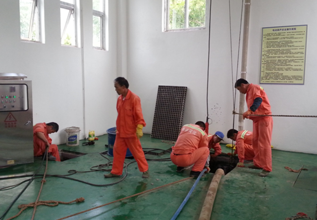 本次維護(hù)重點工作是泵站清淤及潛水泵檢查維護(hù)。經(jīng)過長期運(yùn)行,污水泵室及管道內(nèi)積聚了大量污泥、雜物,造成淤積,影響污水泵的正常運(yùn)行。為了確保污水正常流入泵室,每半年將組織清淤一次。同時,對3臺潛水泵進(jìn)行檢查,補(bǔ)充黃油,確保3臺泵都能正常運(yùn)行。